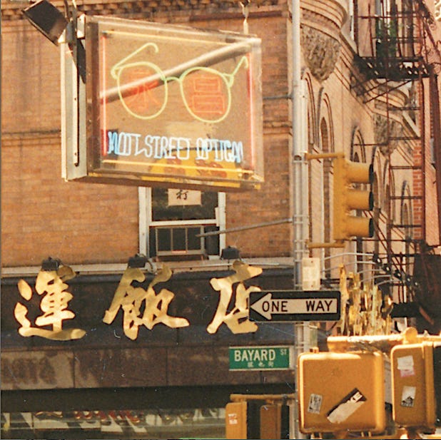 I snapped this photo many years ago. Sadly, the old neon Mott Street Optical sign is long gone…